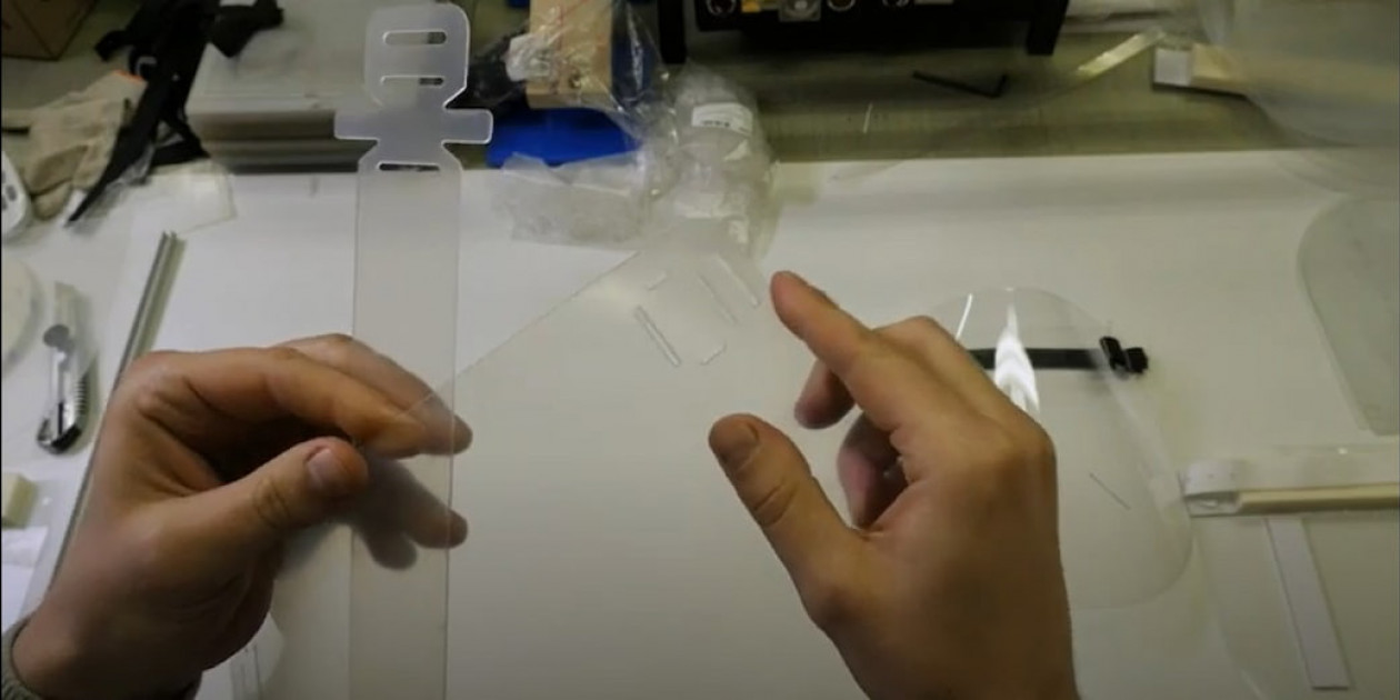 Ну вот, и этот вариант маски готов, осталось только снять защитную плёнку. Один работник изготавливает за смену до 145 таких масок.