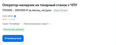 Профессия оператора станков с ЧПУ востребована. Специалистов не хватает, поэтому работодатели привлекают сотрудников бонусами: оплачивают жилье, проезд, премии и другие льготы.