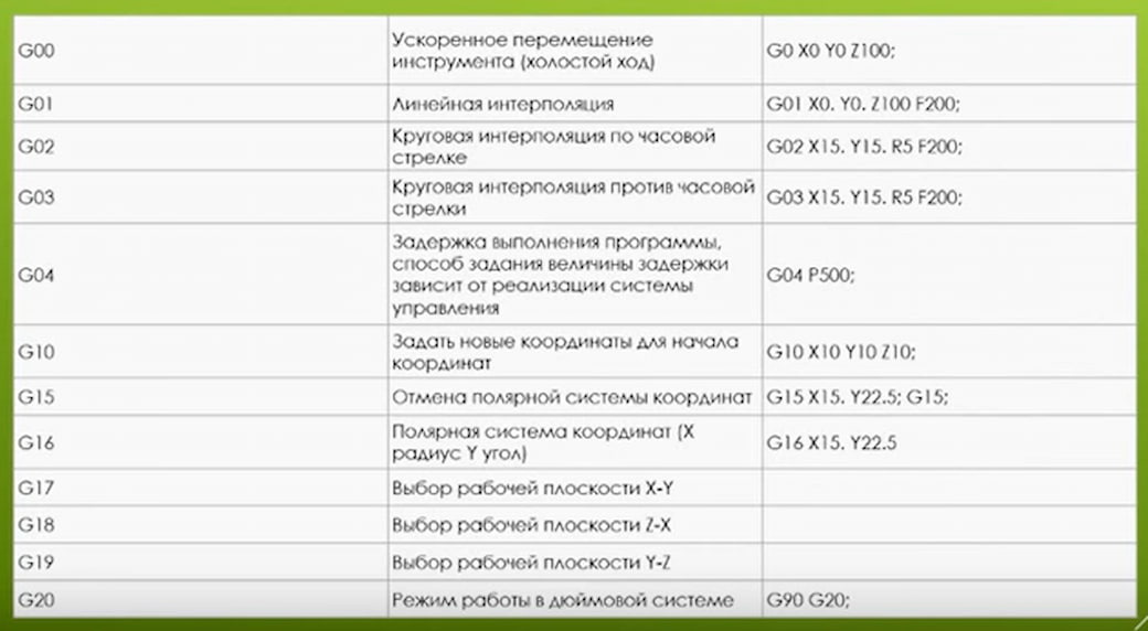 Управляющая программа задаёт не только координаты движения фрезы, но и команды для шпинделя — раскрутить или остановить, а также, скорость движения инструмента и вращения шпинделя