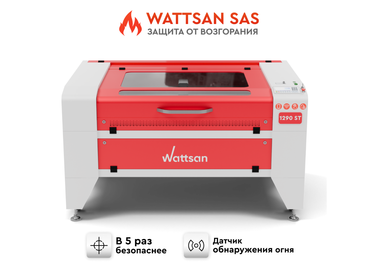 - Лазерный станок должен иметь правильную конструкцию и систему защиты, потому что отстрел лазера может повредить не только материал или машину, но и ваше здоровье. По этой причине на станках Wattsan появилась система Wattsan SAS (Safety Assurance System).