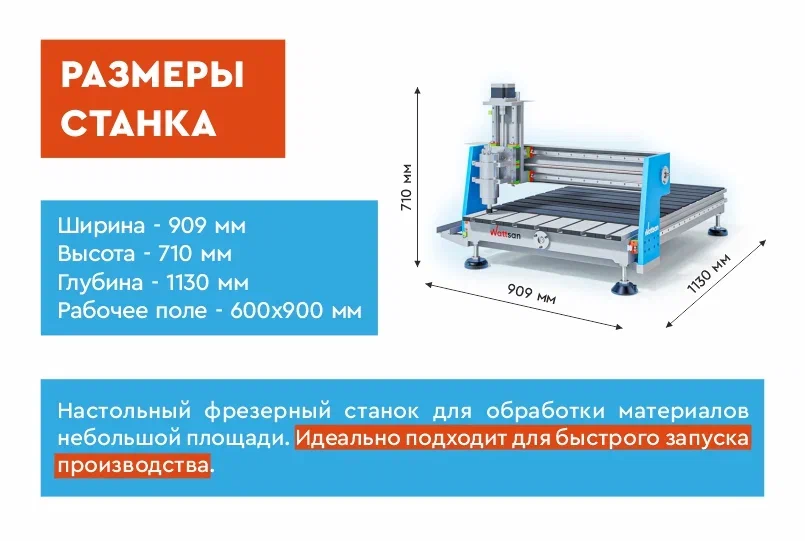 Настольный фрезерный станок с ЧПУ по дереву Wattsan 0609 MINI