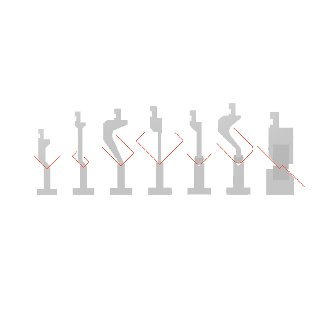 - Осуществляет динамический просчет компенсации прогиба металла для обеспечения идеальной линейности гиба. Компенсация прогиба корректируется в градусах;