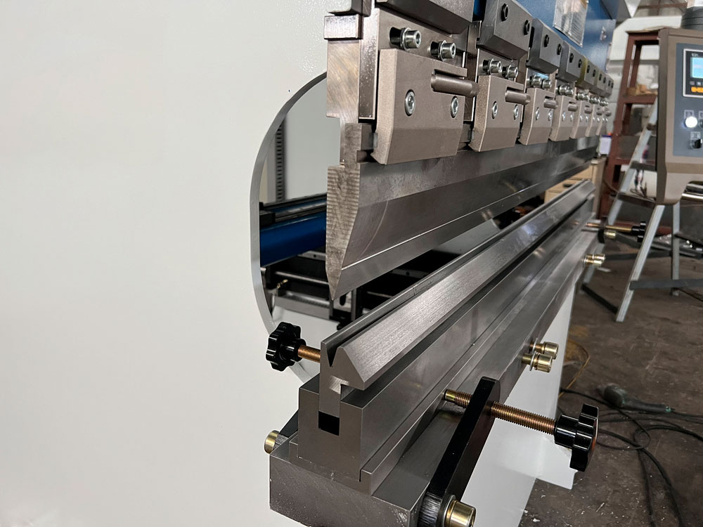 1. Ручная система компенсации прогиба балки. Убирает эффект «сабли» при обработке листа металла длиной свыше 1500 мм. Необходима для загибания материла под одинаковым углом по всей длине листа;