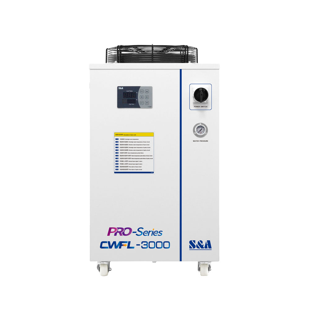 Чиллер S&A CWFL-3000ANS03 был специально спроектирован для охлаждения оптоволоконных (твердотельных) лазерных источников до 3000 Вт.