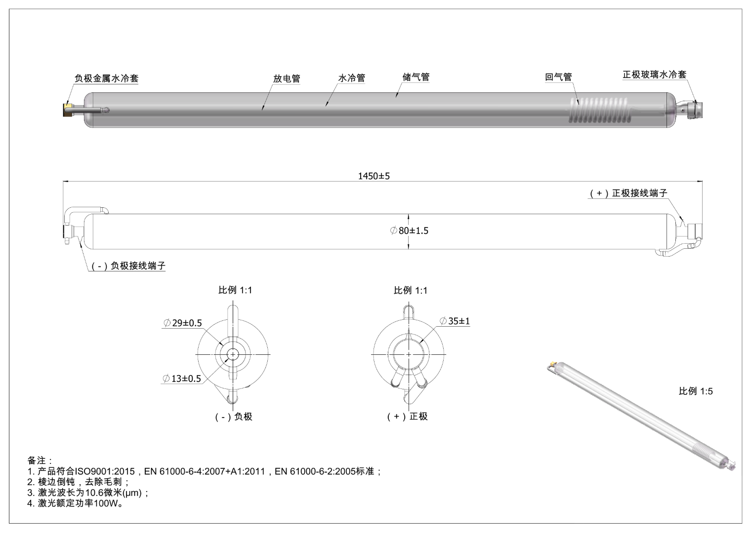 - Необходимо использовать чиллер (водяное охлаждение), только так трубка прослужит весь заявленный срок службы