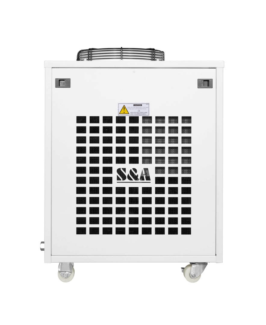 Высокомощный промышленный чиллер S&A CW 5300AN является профессиональным оборудованием, обеспечивающим стабильное и качественное охлаждение жидкости в газоразрядных трубках лазерных станков. Хладагентом в устройстве выступает фреон R-410a, поэтому вода, проходящая сквозь чиллер, остывает значительно быстрее, чем в моделях, оснащенных воздушной системой охлаждения.