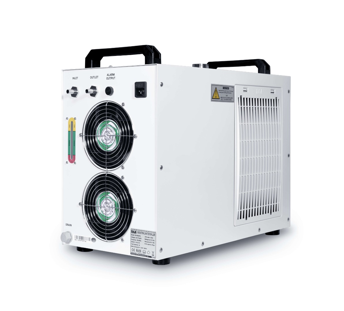 Чиллер SA CW 5000TG представляет собой компактное внешнее устройство для подсоединения к лазерным станкам, работающим на основе газовой смеси. Эффективность охлаждения газовой среды при помощи такого оборудования намного превышает систему водообмена, размещенную в трубке.