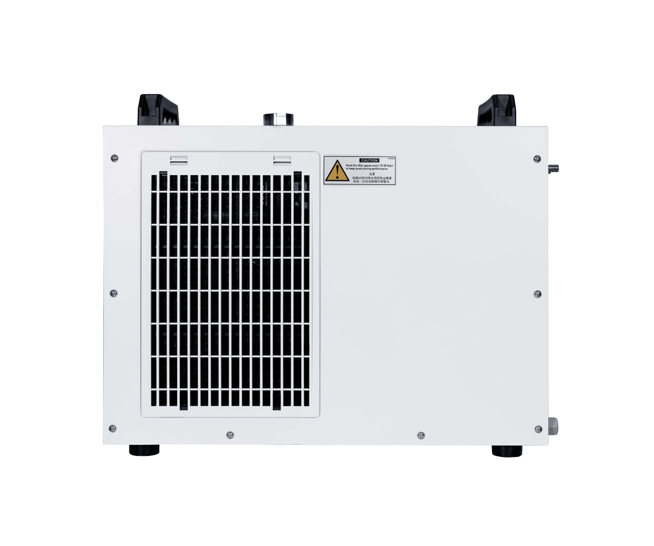 Конструктивно SA CW 5000TG представляет собой моноблок со встроенным герметичным баком на 6 литров. В качестве теплоносителя выступает вода, а для ее качественного и своевременного охлаждения используется фреон R-134a. На задней стороне устройства размещен датчик уровня вода, два штуцера для подсоединения к газоразрядной трубке и сливное отверстие.