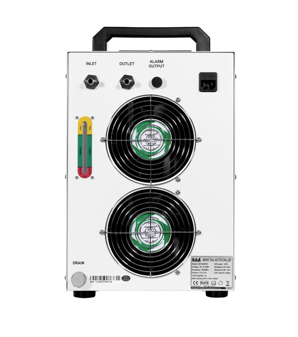 Чиллер SA CW 5200TI является устройством для охлаждения жидкости и подсоединяется к излучателю лазерных станков, предназначенных для работы с неметаллическими материалами. Несмотря на то, что все лазерные трубки поставляются со встроенным контуром водяного охлаждения, использование чиллера многократно улучшает терморегуляцию и продляет срок службы трубки.