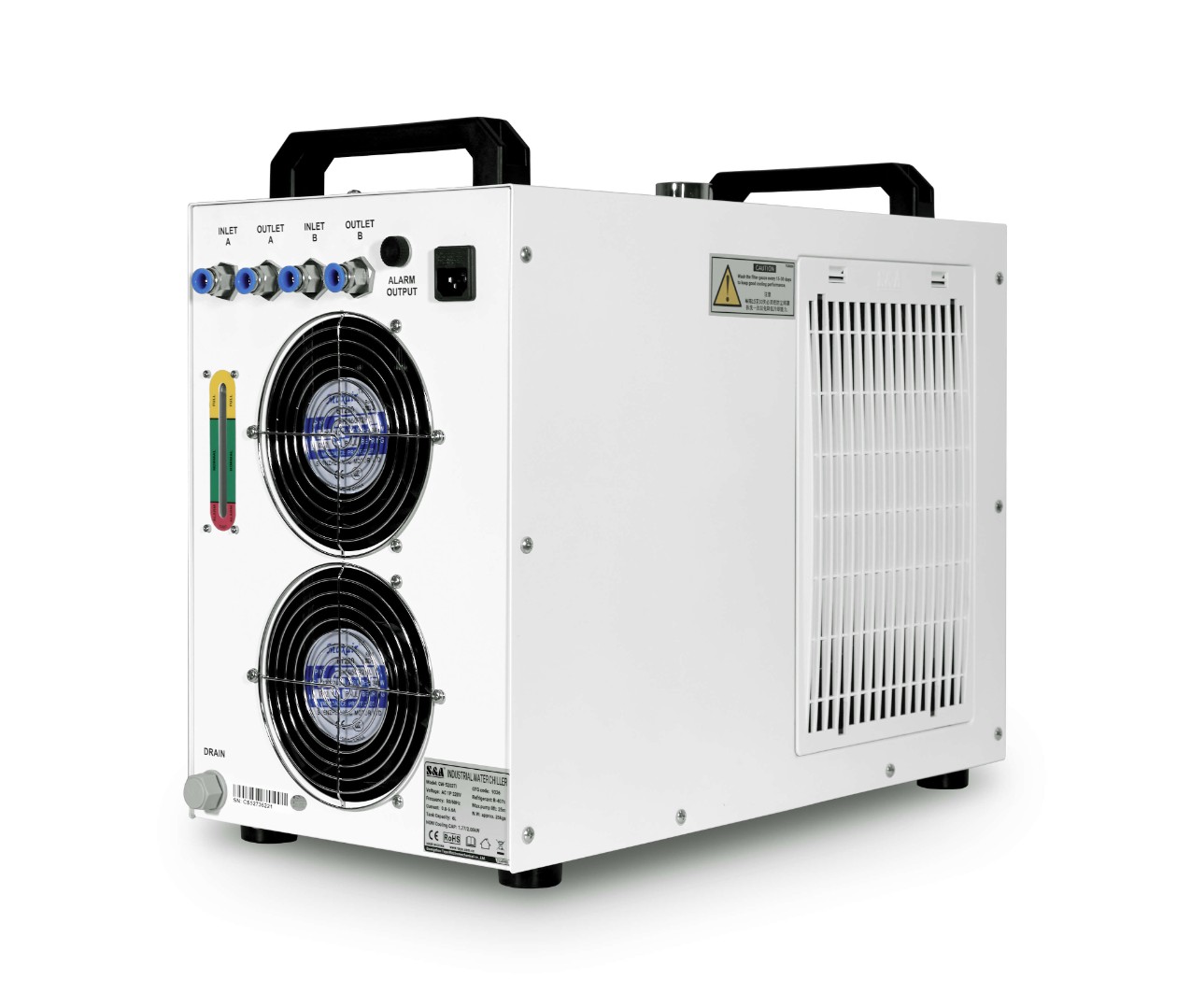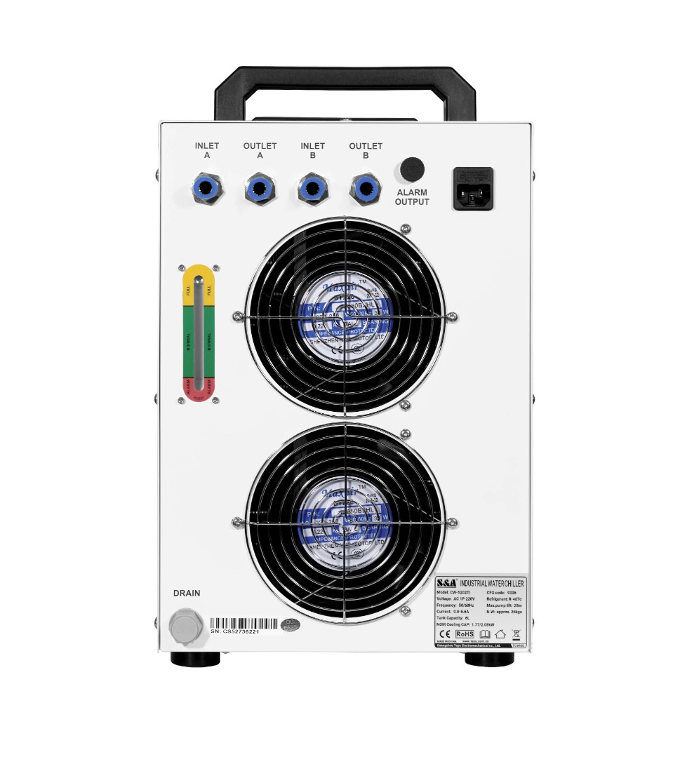 Чиллер SA CW 5202AH является аналогом модели CW-5200AH, но благодаря его конструкции возможно подключения двух охлаждаемых устройств одновременно, то есть двух лазерных трубок.