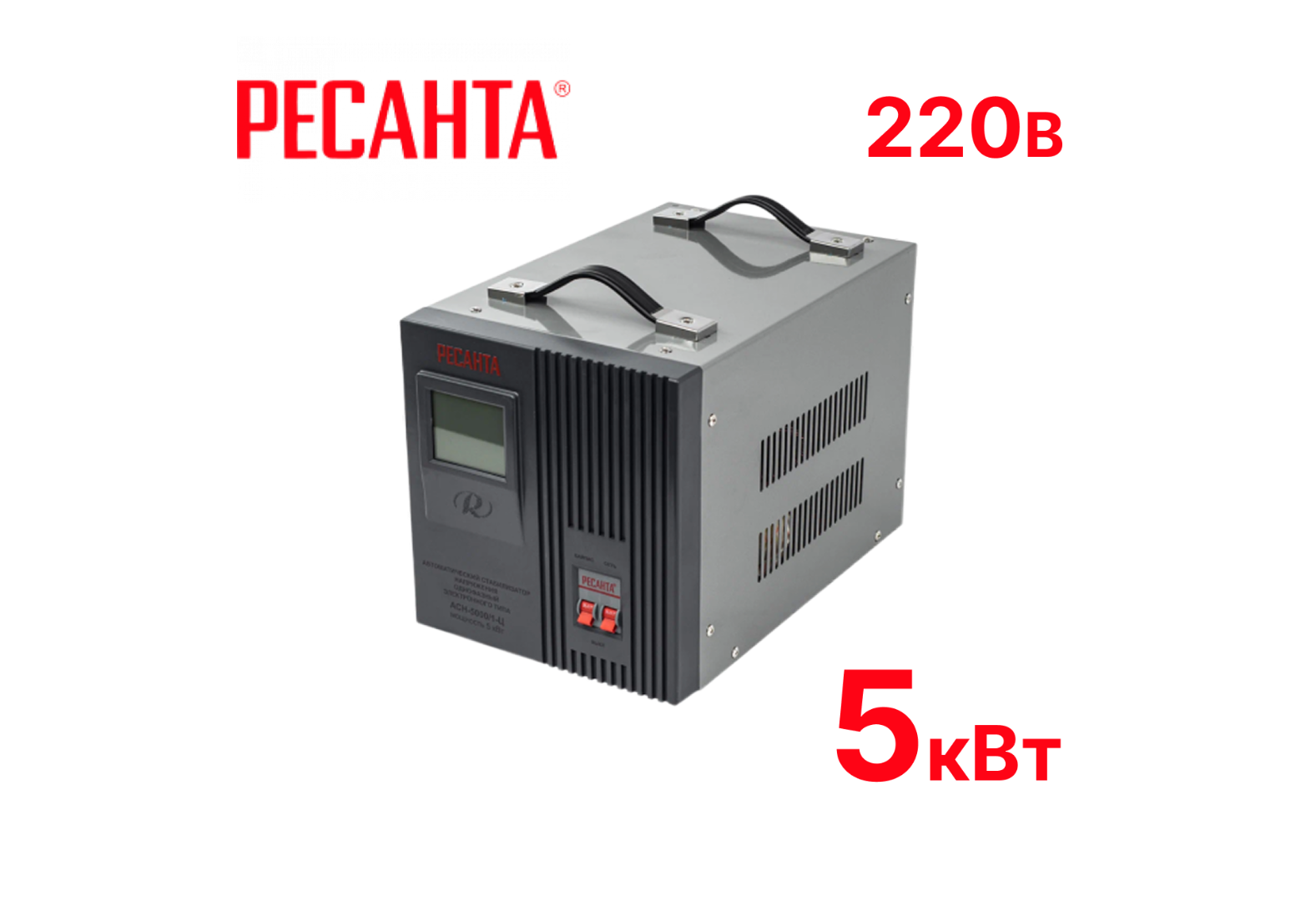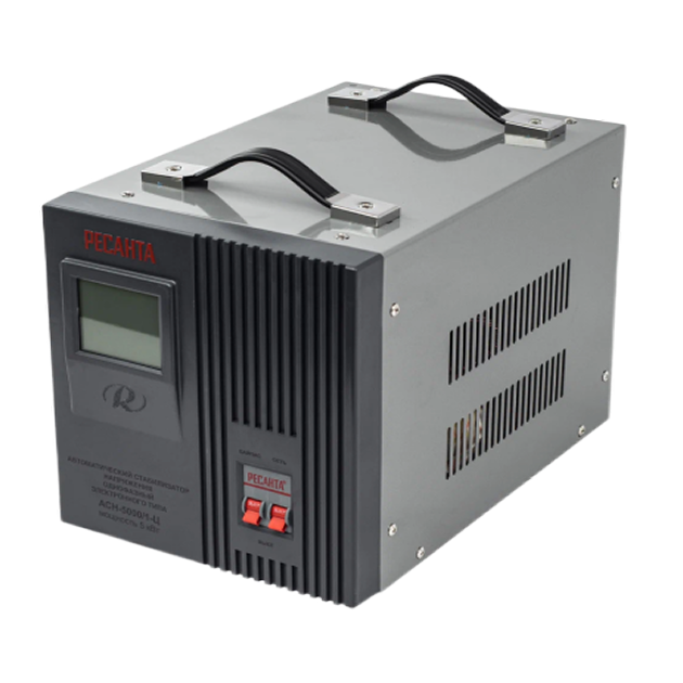 Стабилизатор напряжения Ресанта АСН 5000/1-Ц предназначен для выравнивания входного напряжения и защиты приборов от перепадов напряжения. Превышение пределов поддерживаемого входного напряжения автоматически отключает подачу питания.