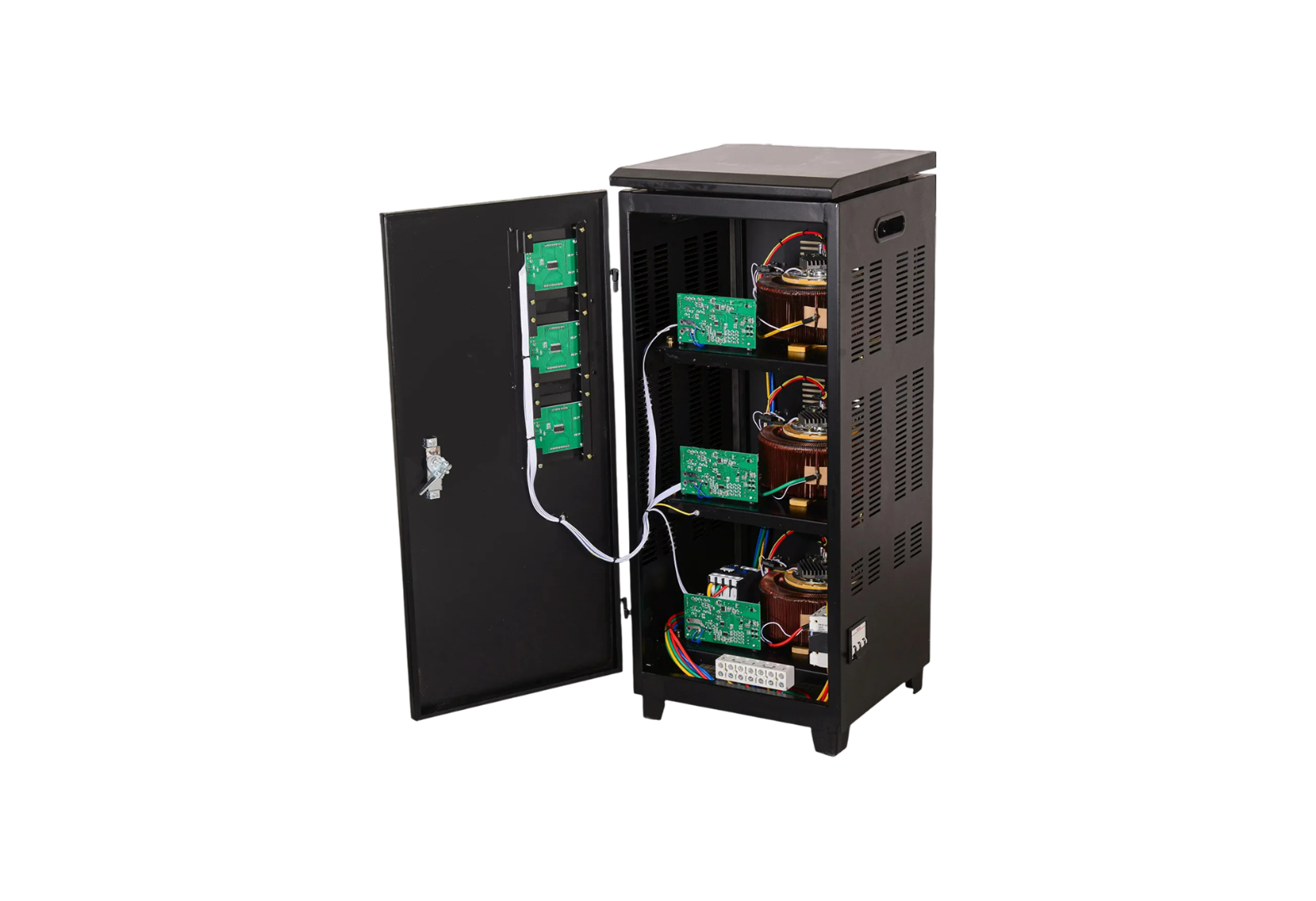 Такой стабилизатор стоит устанавливать в места, где входное напряжение пониженное или повышенное, но без частых колебаний. Рабочий диапазон стабилизатора находится в пределах от 240 до 430 В.