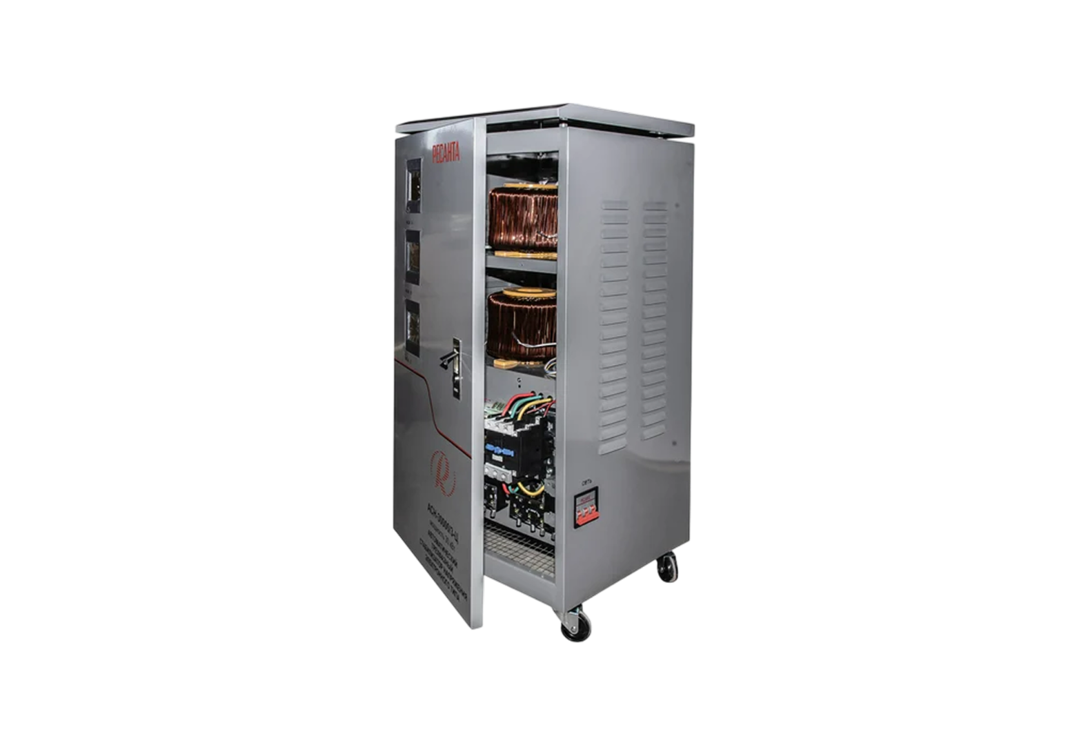 Стабилизатор напряжения Ресанта АСН 30000/1-Ц предназначен для выравнивания входного напряжения и защиты приборов от перепадов напряжения. Превышение пределов поддерживаемого входного напряжения автоматически отключает подачу питания.