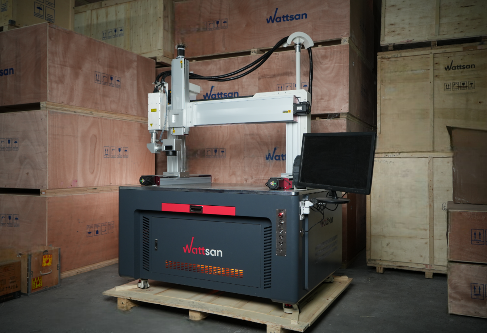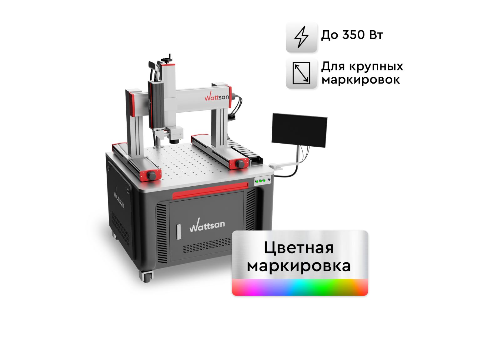 Лазерный маркер Wattsan FL GT (Gantry Type) — портальный лазерный маркер с неограниченной областью маркировки, благодаря модулям перемещения, на которых расположен сканатор, и системе управления Syntec Marking.