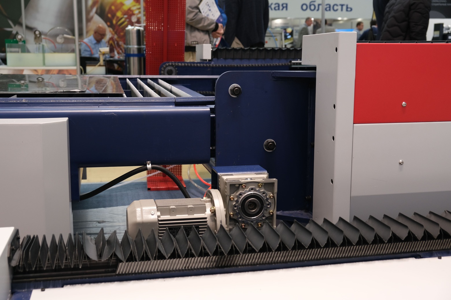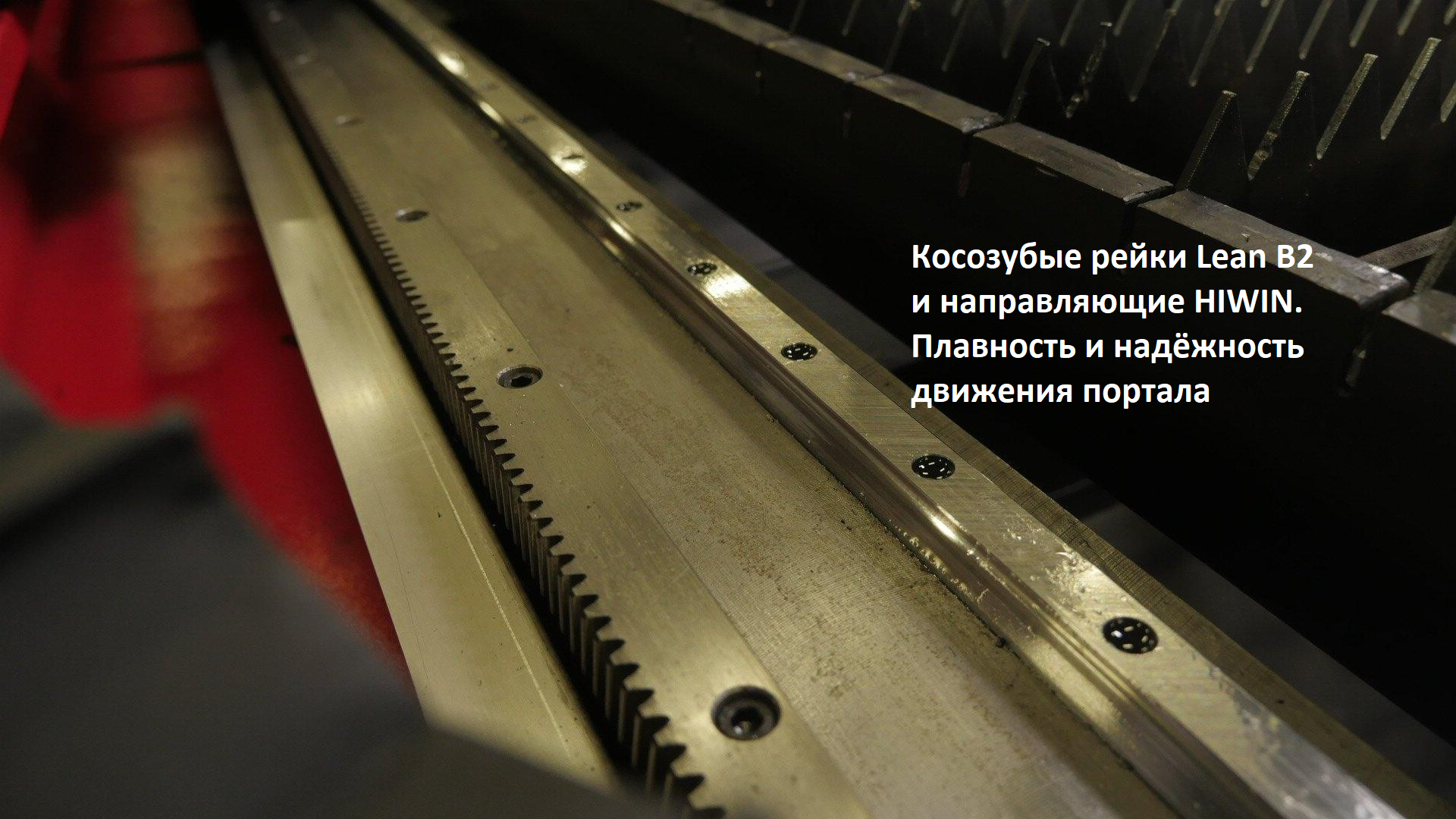 Косозубые рейки идут вдоль станка параллельно направляющим и участвуют в движении портала.