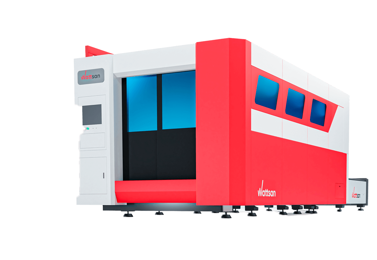 WATTSAN 1530S TABLECHANGE CABINE оборудован сменным столом. Он нужен, чтобы осуществлять непрерывную работу станка 24/7 и не тратить время на загрузку и выгрузку изделий. Пока на одном столе режется лист металла, на втором — оператор собирает готовые изделия и подготавливает следующий лист. Это экономит время и повышает эффективность работы.