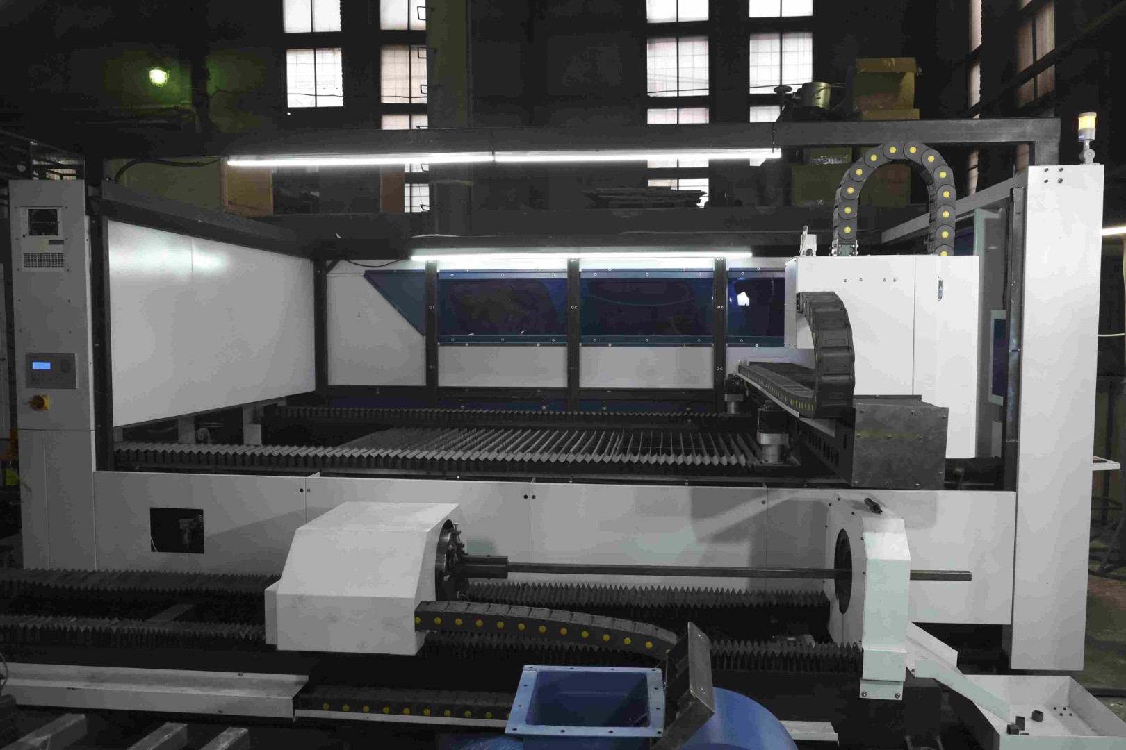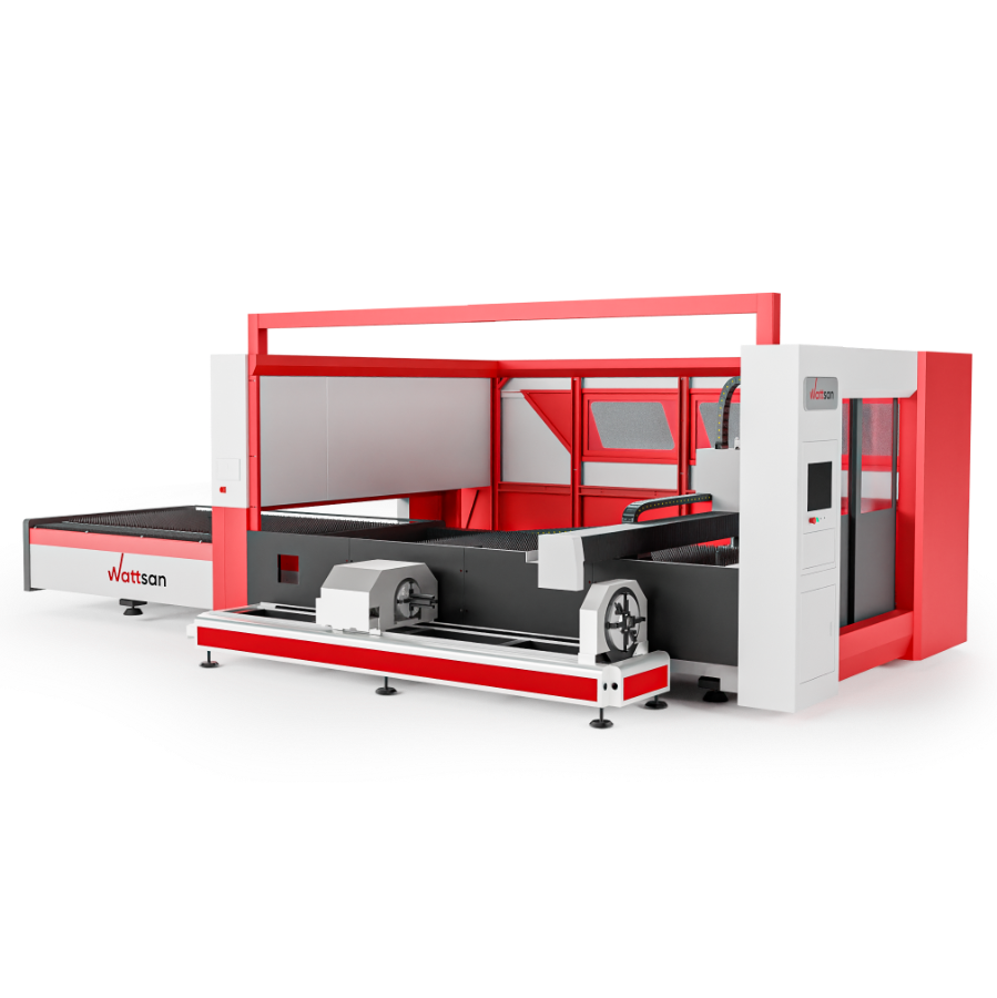WATTSAN 1530S TABLECHANGE ROTATOTY CABINE (для резки труб и листов в кабине) — это раскроечный комплекс , который подойдет для любого производства как мелкого, так и крупного. На станке можно резать трубы квадратного до 160 мм и круглого сечения до 220 мм, длиной от 3 до 9 метров.