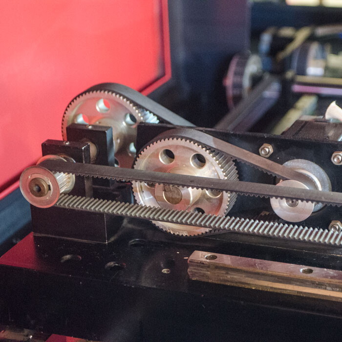 • Движением портала и рабочей головы управляет трехфазный шаговый двигатель. Технология дает преимущество перед двухфазными станками в скорости работы — возможна экономия времени до 30% при таком же качестве.