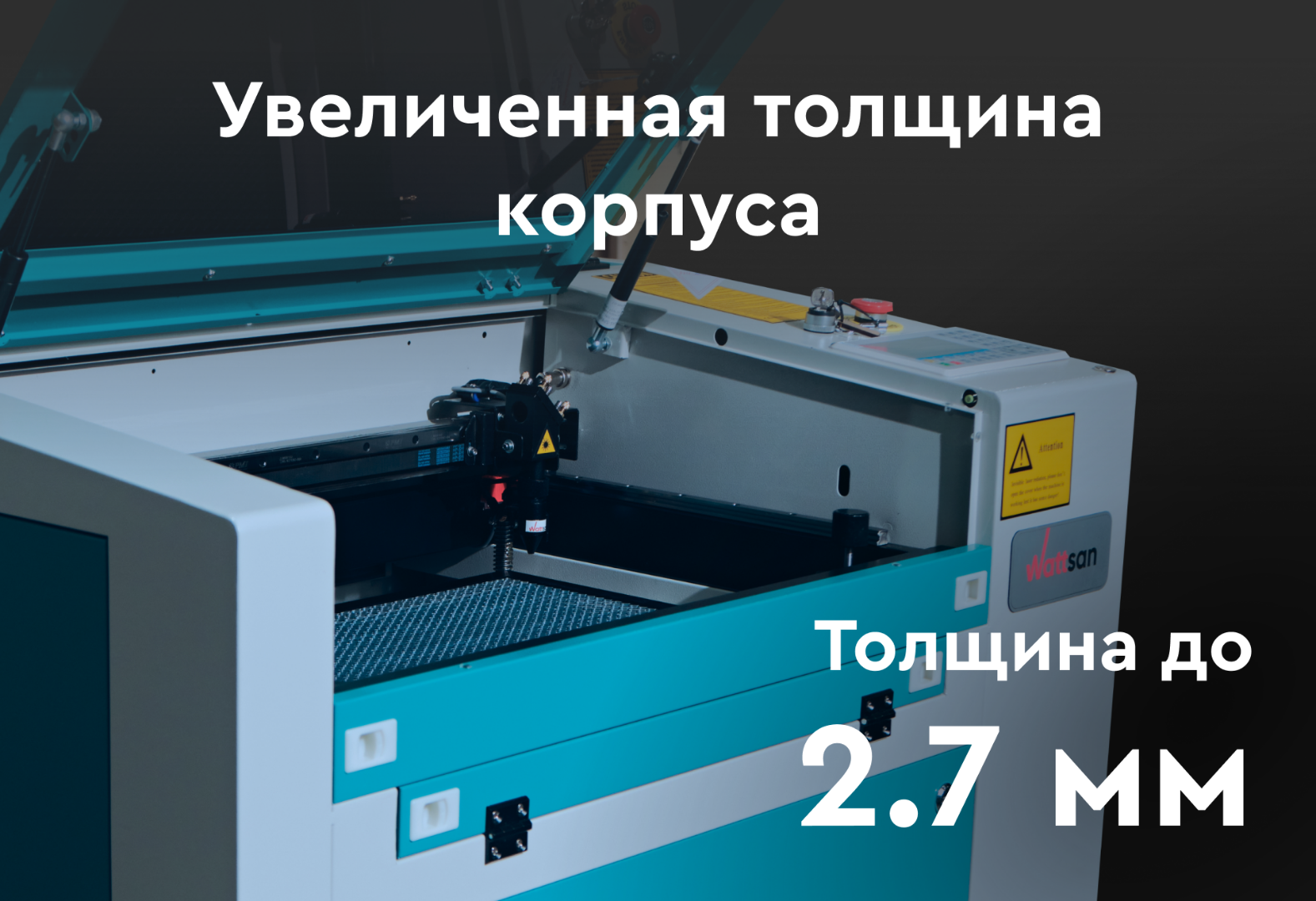 Порталы на лазерных станках Wattsan изготавливаются из алюминия толщиной от 3 до 5 мм и имеют дополнительные ребра жесткости, что обеспечивает долговечность работы.