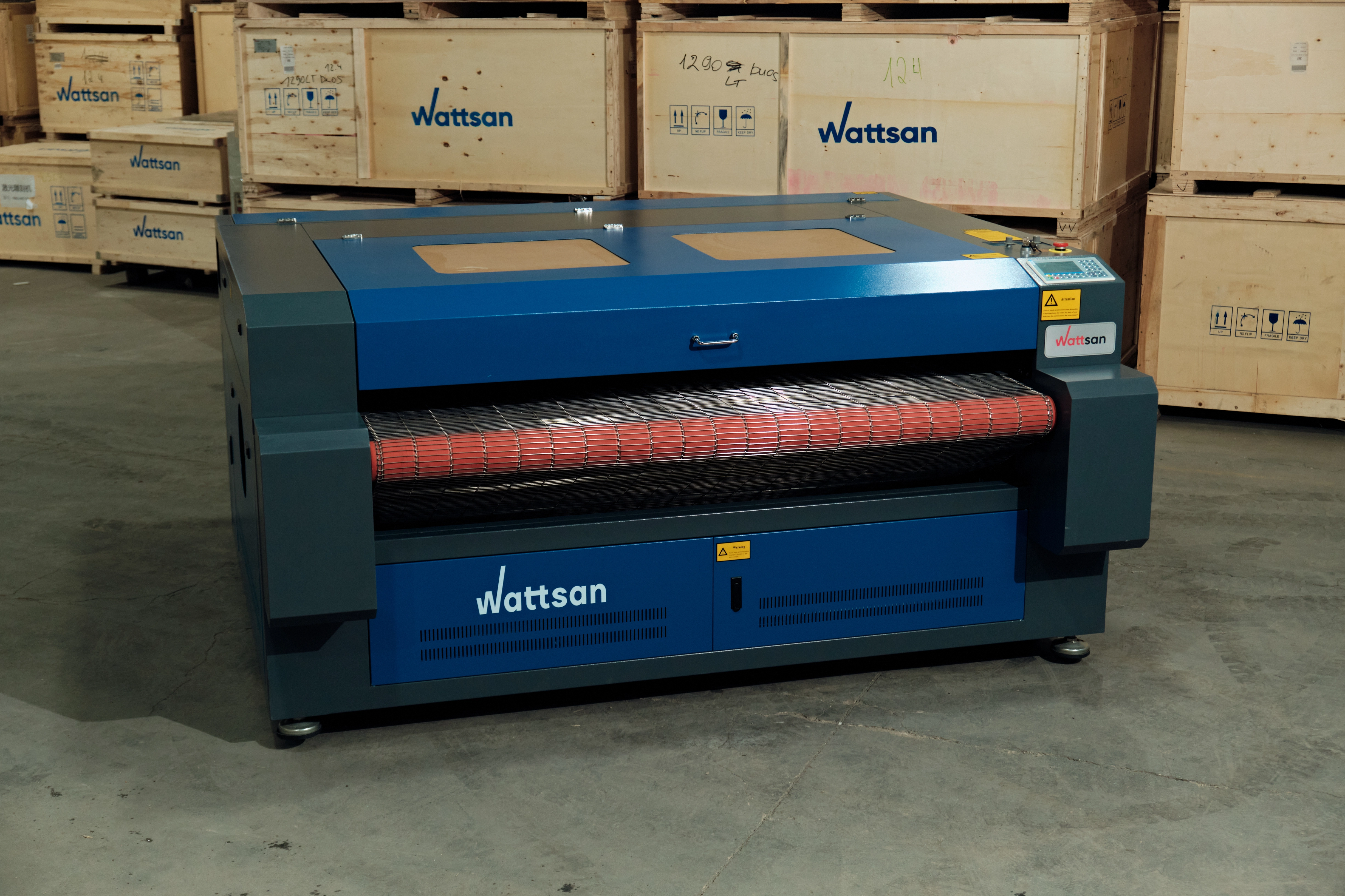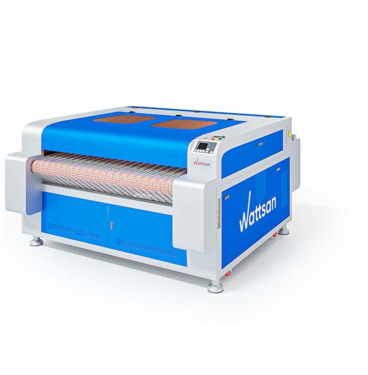 Среднеформатный лазерный станок WATTSAN 1610 Duos conveyor предназначен для потокового раскроя ткани, кожи, кожзама и других рулонных материалов.