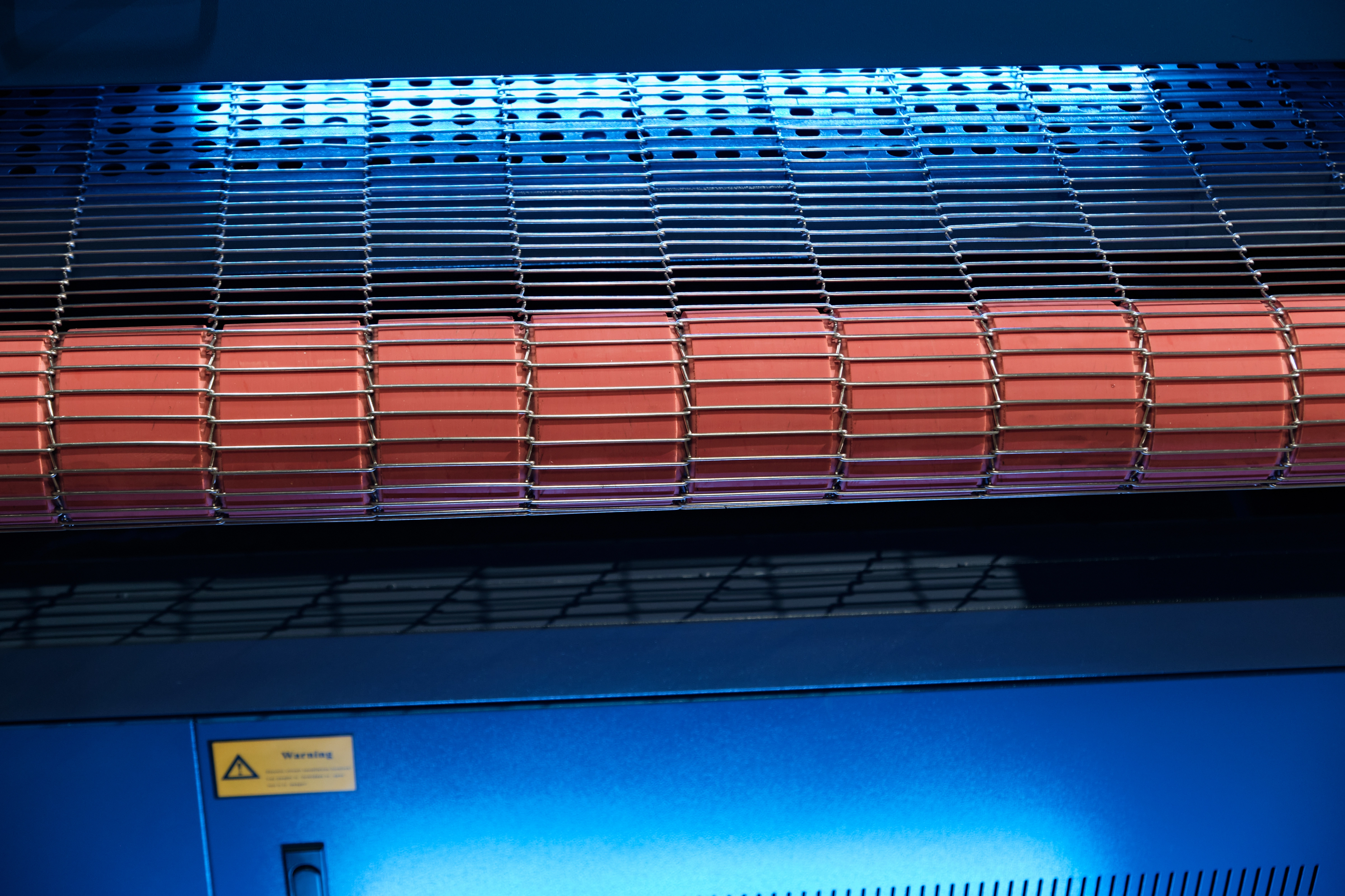Покрытие стола выполнено из стальной сетки круглого сечения толщиной 2 мм. Поскольку раскрой ткани выполняется на малых мощностях, такое покрытие исключает отстрелы при работе.