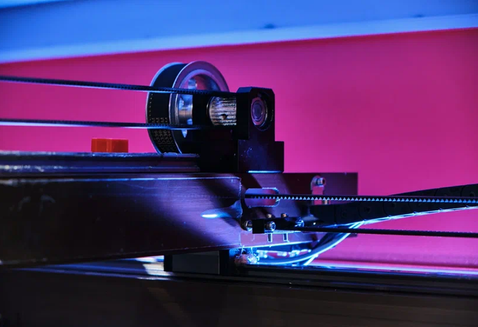 Мы специально заменили двухфазные шаговые двигатели на трехфазные. Это позволило уменьшить величину шага относительно аналогов и значительно увеличить качество гравировки, а также улучшить плавность хода, что особенно актуально при резке акрила и толстой фанеры.