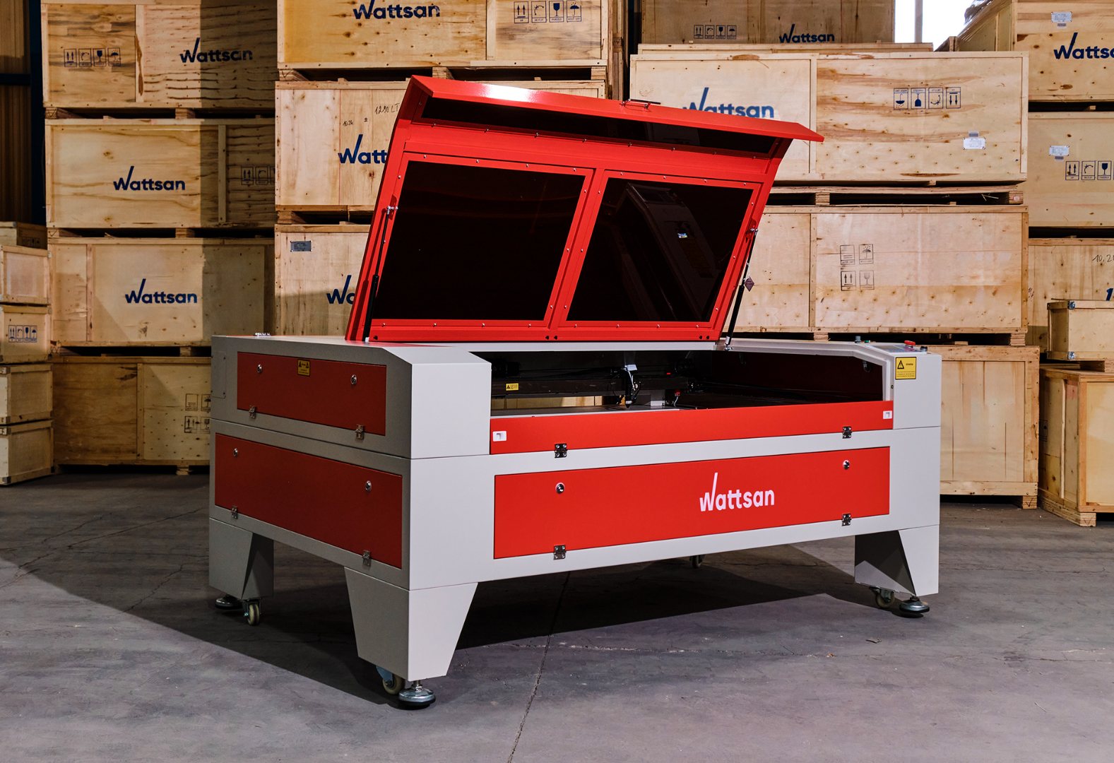Порталы на лазерных станках Wattsan изготавливаются из алюминия толщиной от 3 до 5 мм и имеют дополнительные ребра жесткости, что обеспечивает долговечность работы.