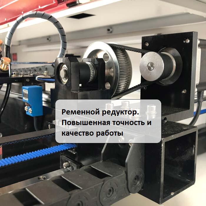 Ременной редуктор снимает напряжение с шагового двигателя, способствует плавной работе и повышенной точности  и качеству работы.