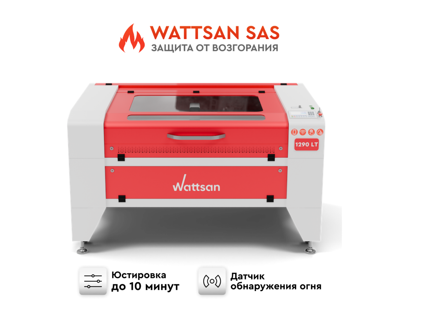 Wattsan 1290 LT — универсальный CO2 станок для резки и гравировки с рабочим полем 1200x900 мм. Позволяет резать большинство материалов без дополнительного раскроя, экономя время и снижая издержки.