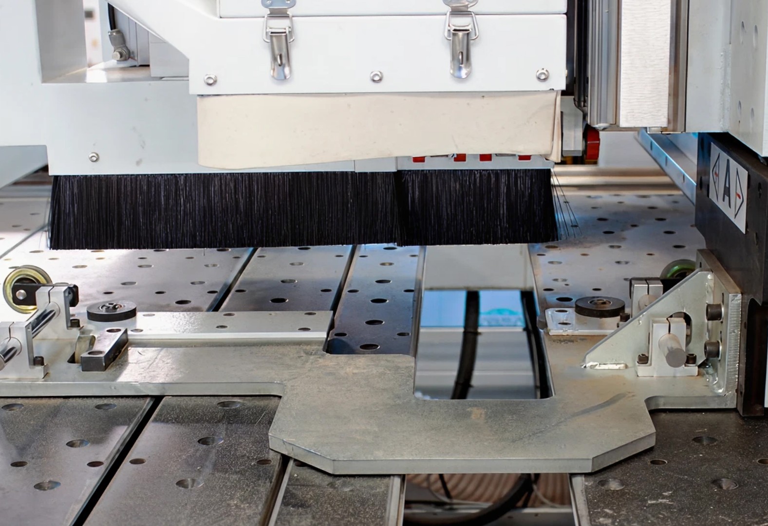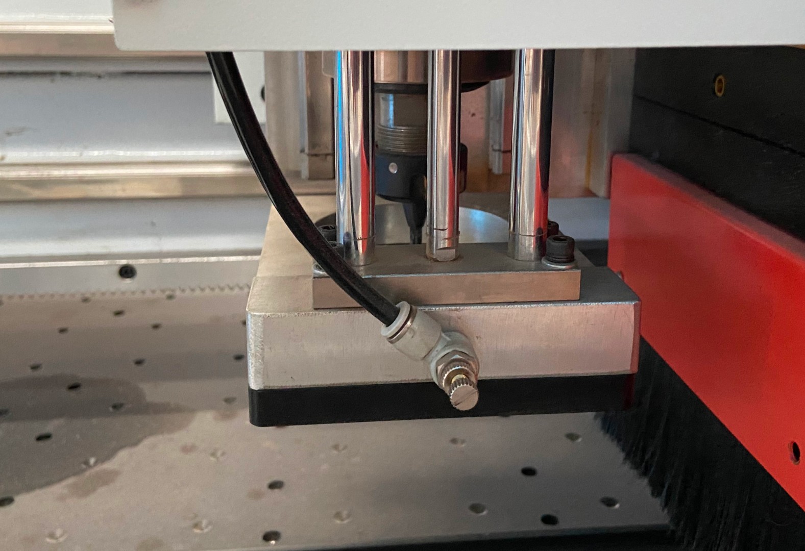 - Оснащен пневматическими шариками, которые позволяют легко перемещать заготовку без царапин