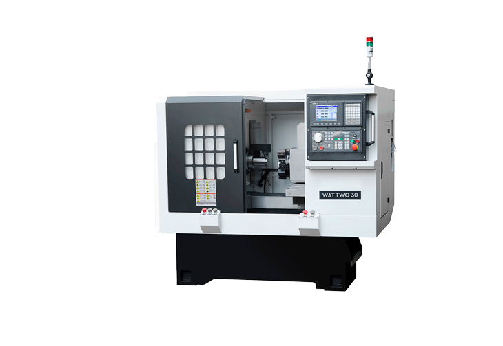 Станок WAT TWO 30 — двухшпиндельный/револьверный обрабатывающий центр с прямой станиной. Станок отлично справляется с функцией двухсторонней обработки деталей и дает более высокую точность, по сравнению с процессом обработки, когда деталь перемещается со станка на станок.