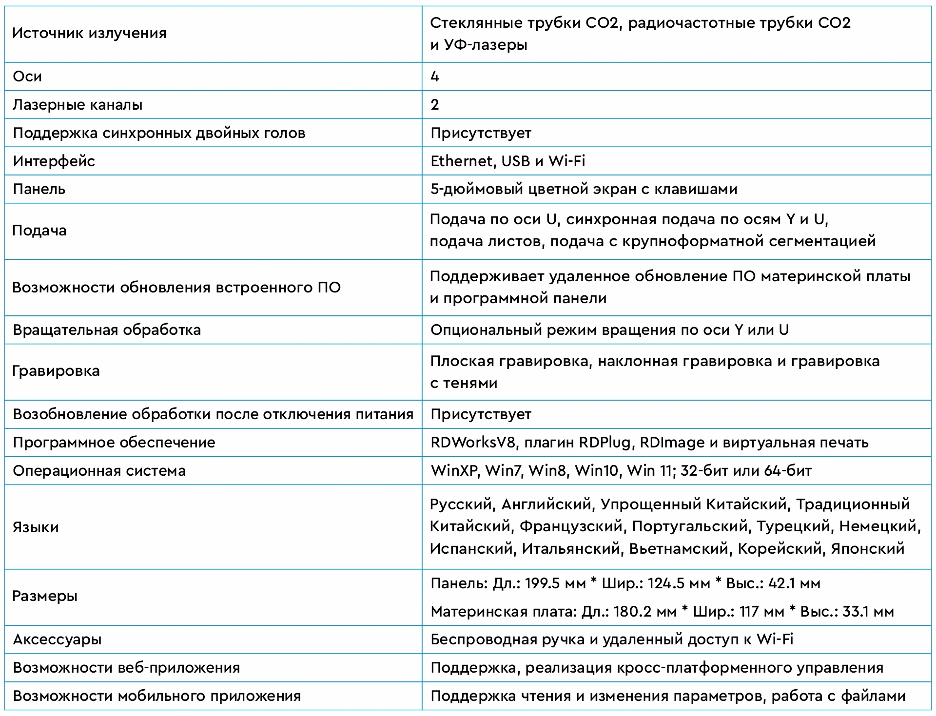 Таблица характеристик контроллера Ruida RDC8445S